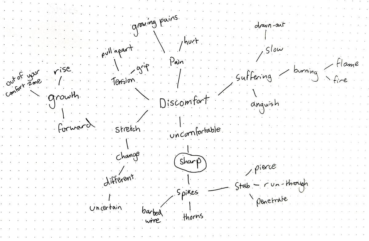 Represents pain and discomfort and fits well into the negative space of the lowercase d.