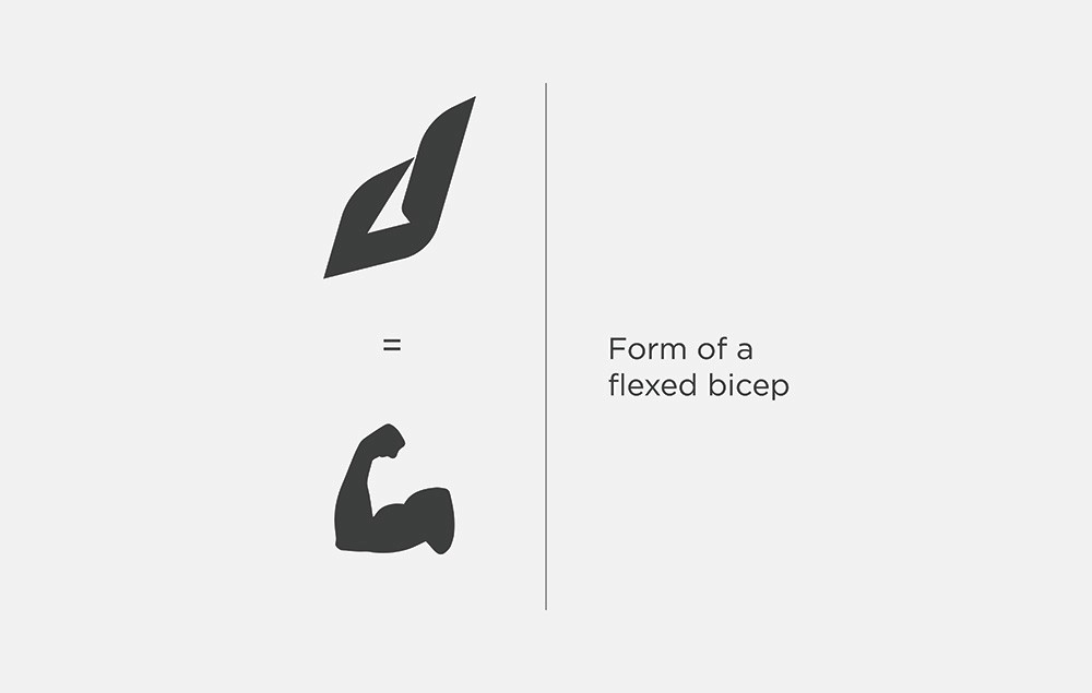 The geometric mark also takes on the the form of a person flexing their bicep muscle.