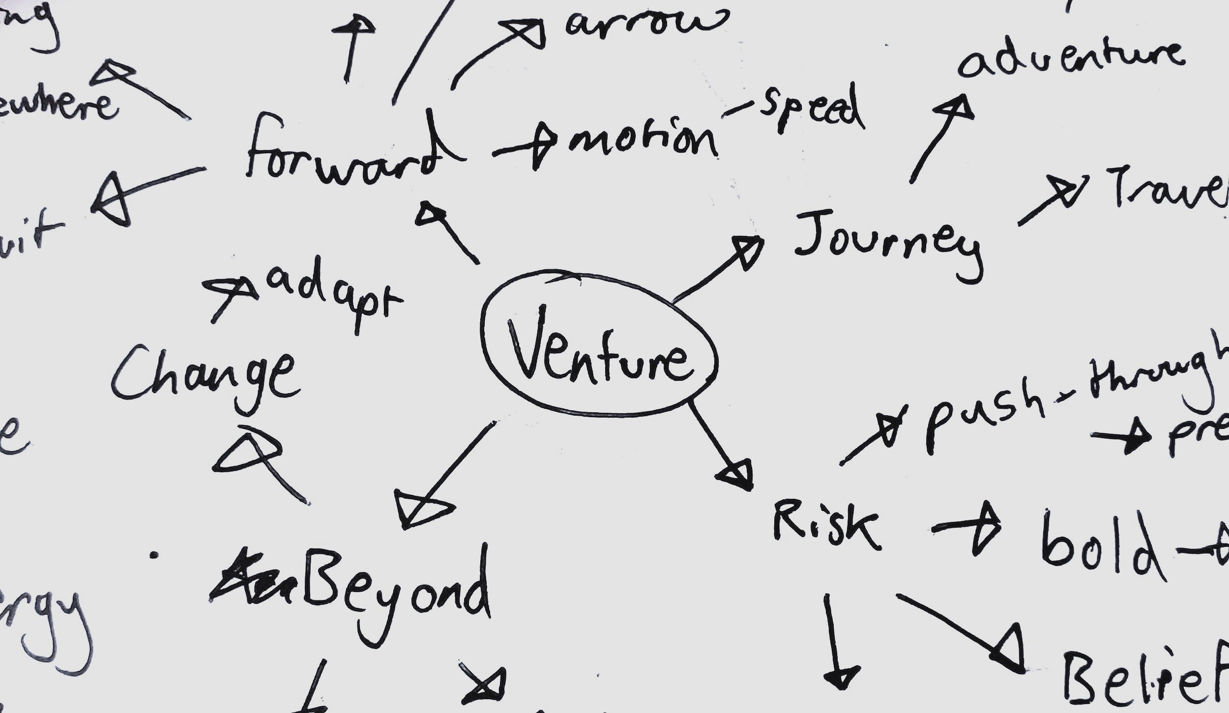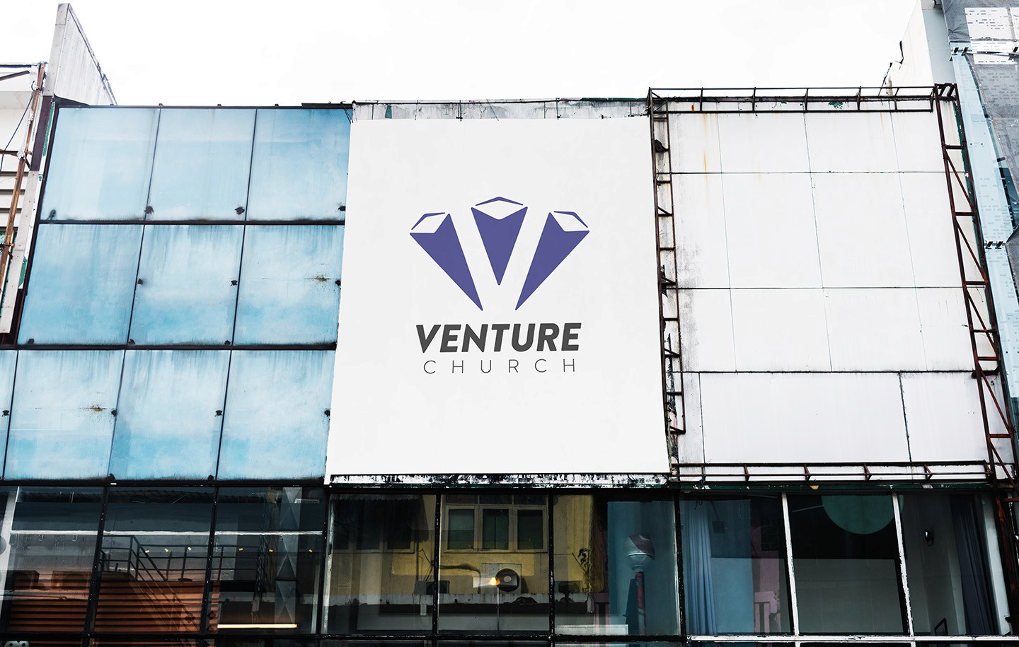 The 'V' for Venture hidden in the negative space between the stepping stones.